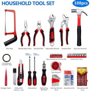 FASTPRO 215-Piece Home Repairing Tool Set with 12-Inch Wide Mouth Open Storage Bag,Household Hand Tool Kit